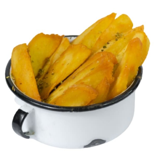 Fritas sequinhas, crocantes e temperadinhas. Acompanha nossa maionese da casa e é perfeita pra compartilhar. 350 gramas.