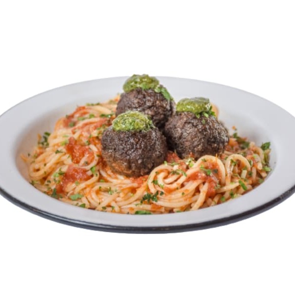 Espaguete ao molho à bolonhesa de soja orgânica, molho de tomates frescos e manjericão. *Solicite o nosso produto sem glúten, se necessário! *** Não trocamos e nem retiramos ingredientes dos nossos pratos! ***