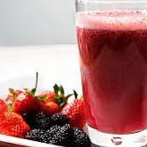 Nosso suco funcional vermelho leva: amora e morango.