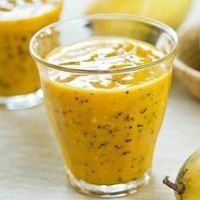 Nosso suco funcional amarelo leva: manga e maracujá.