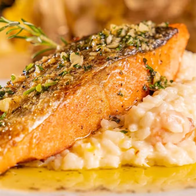 Risoto De Salmão Com Aspargos & Teriaki De Blueberry