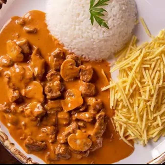 Strogonoff De Filé Mignon, Arroz Com Brócolis E Batata Palha