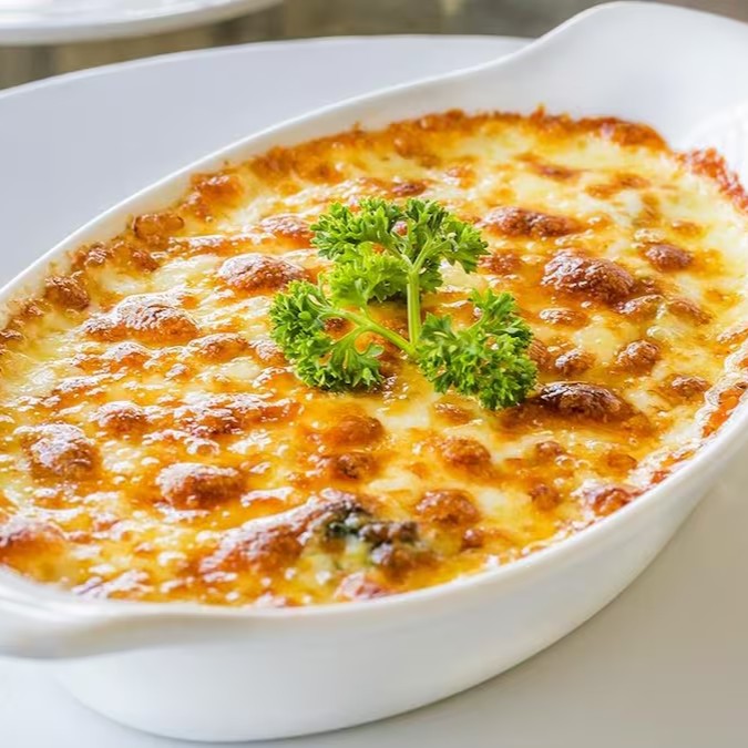 Filé de peito de frango temperado e desfiado, regado com um delicioso molho de queijos preparado sem farinha de trigo, milho batido e purê de batata (doce ou inglesa, você escolhe!). Agora finalizado com batata palha artesanal! Tudo isso gratinado a 270 graus e enviado em embalagem térmica!