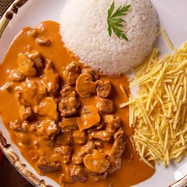 Strogonoff De Filé Mignon, Arroz Com Brócolis E Batata Palha Artesanal