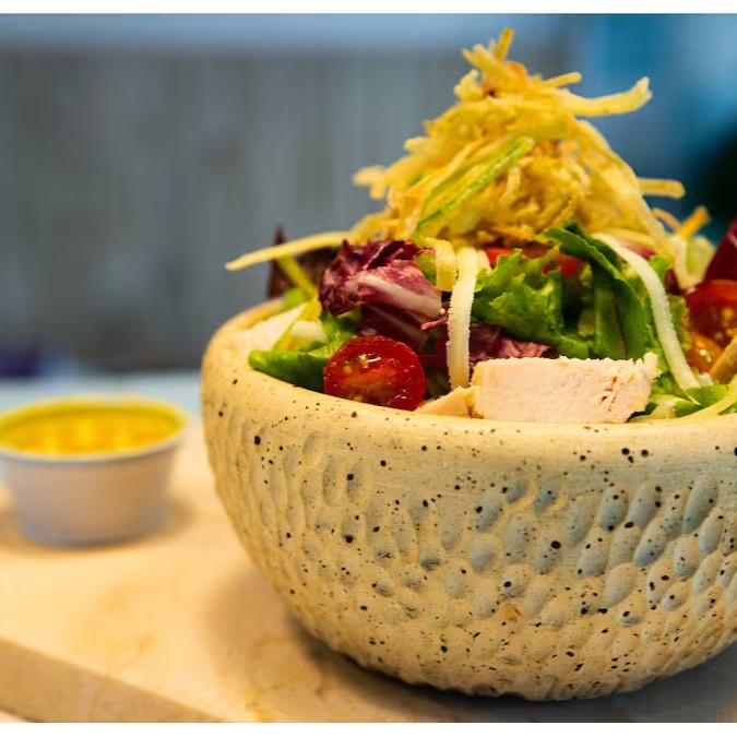 Escolha sua salada Leve favorita, servida em um bowl de 01 Litro. Neste combo acompanhadas de um suco funcional cremoso, 100% feito com frutas ou substitua por água ou refrigerante.