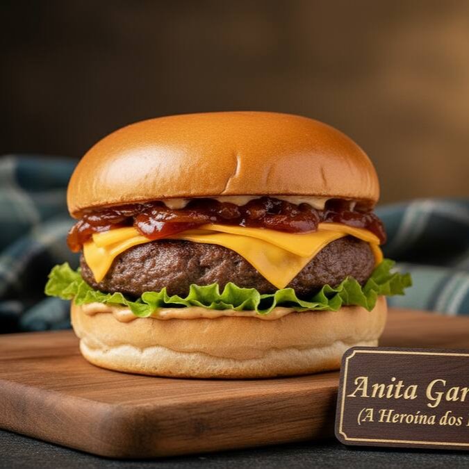 Pão brioche, suculento blend de carne de boi da casa (120g), queijo prato derretido, fresca alface americana, cebola caramelizada e nosso molho especial Farroupilha, um barbecue com um toque de pimenta biquinho.• Identidade: O hambúrguer que evoca a força e a bravura da heroína. Uma combinação de sabores fortes e marcantes, que remetem à cultura gaúcha e à Revolução Farroupilha.