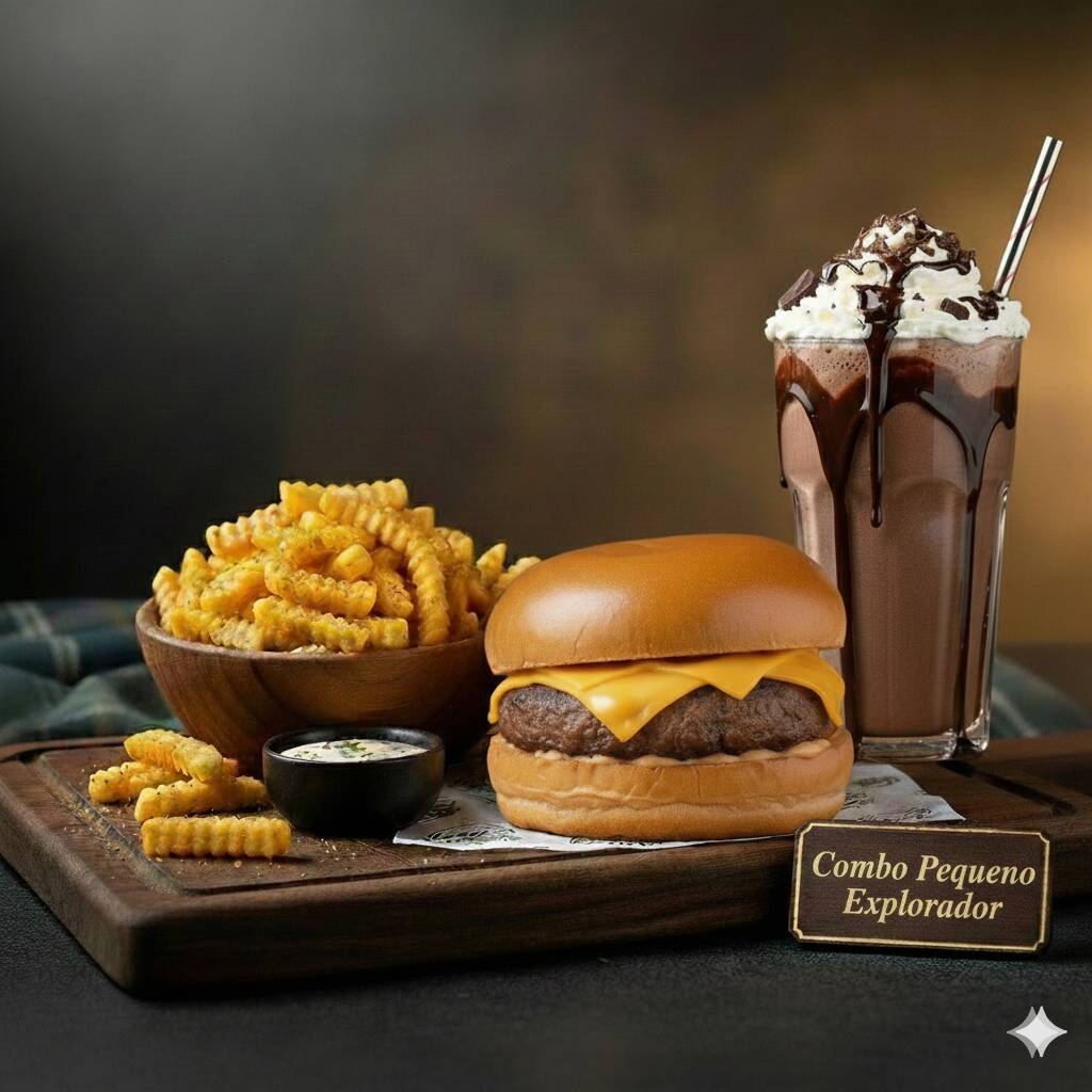 Combo Pequeno Explorador Shake (hambúrguer 90g + Fritas + Milkshake)