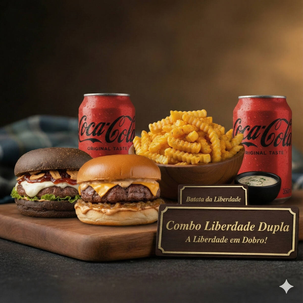 Combo Liberdade Dupla (2 Hambúrgueres De 120g + 1 Porção De Fritas + 2 Refrigerantes)