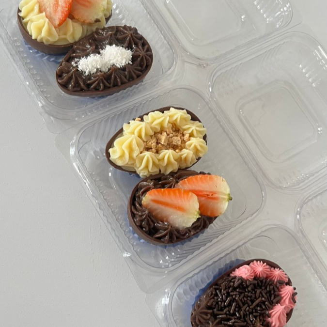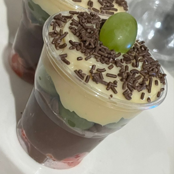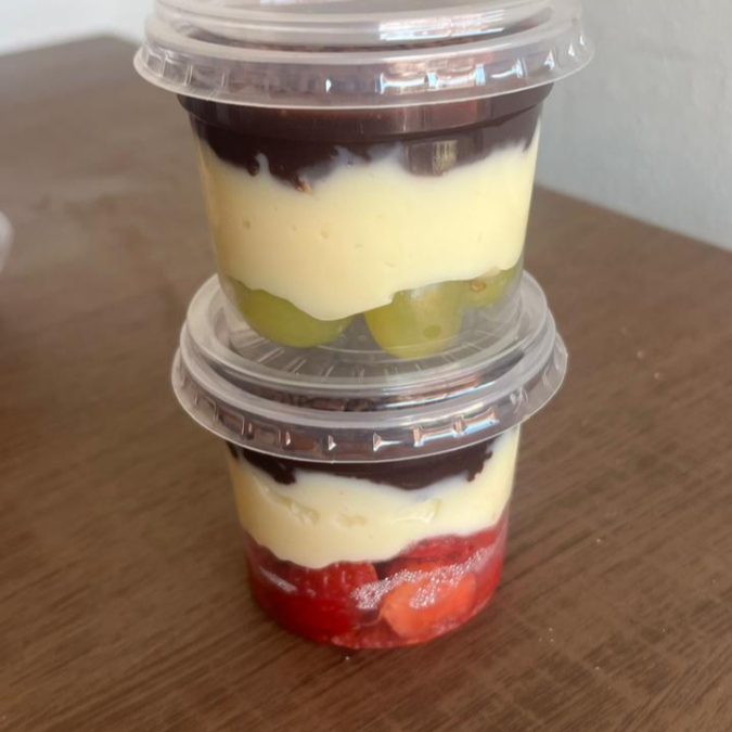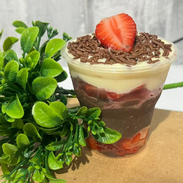 Escolha 2 sabores: Ninho, brigadeiro, sensação, prestígio, coco, amendoim, Negresco, paçoca, kit Kat, Bis, uva, confete, chocoball e ninho/brigadeiro com morango