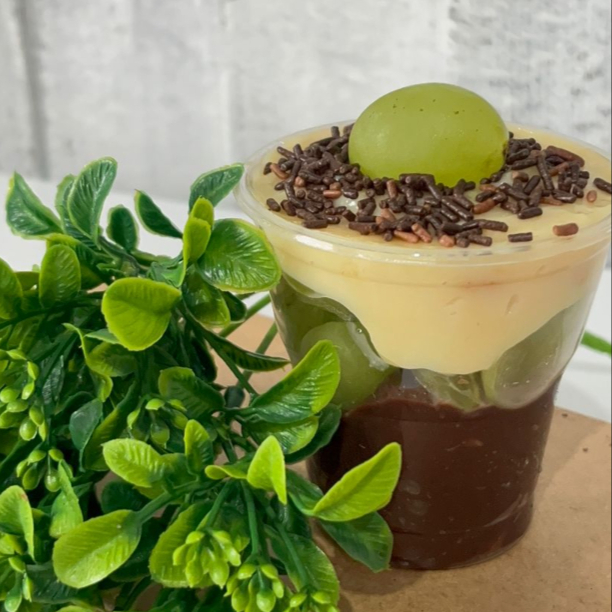 Uvas verdes, brigadeiro de ninho e ganache de chocolate