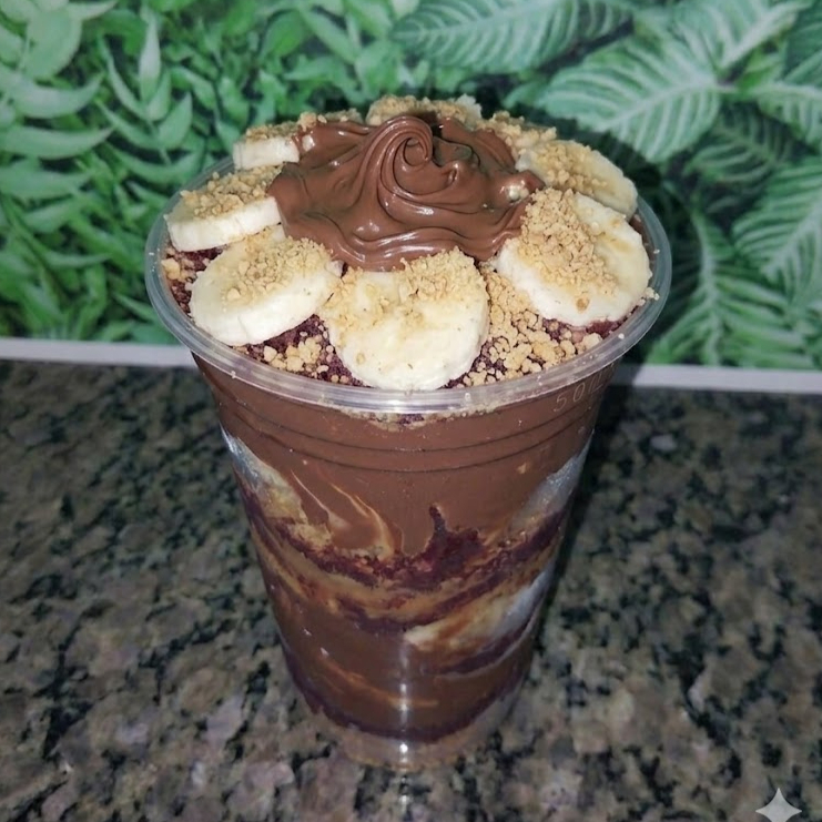 Creme de açaí acompanhado de banana, creme de avelã e paçoca
