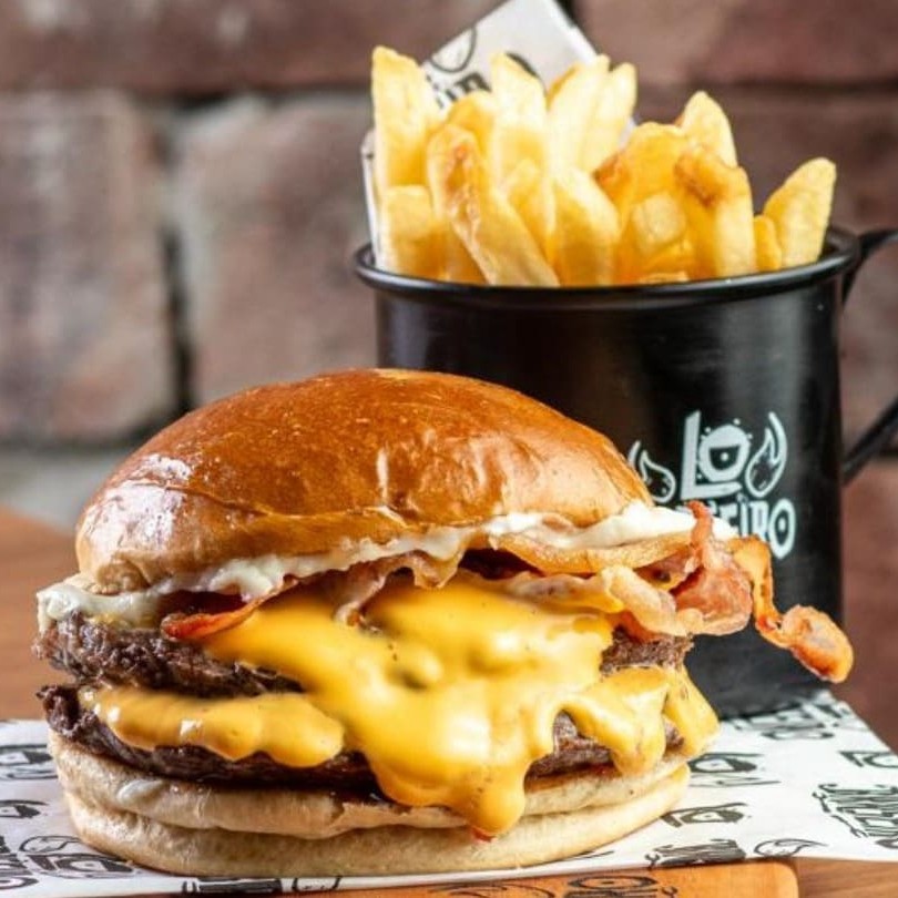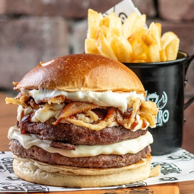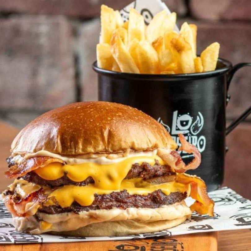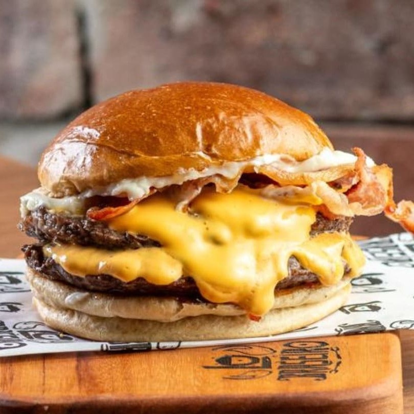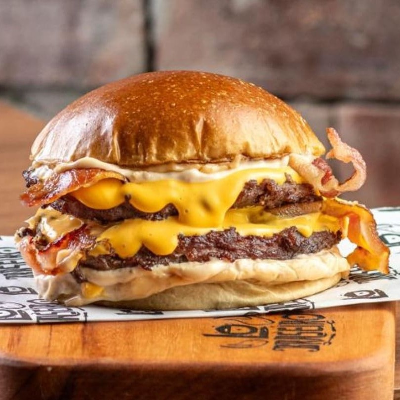 Pão de brioche, 02 burgers de 100g, dupla camada de cheddar cremoso feito na casa, dupla camada de bacon em fatias e dupla camada de baconese. Todos Nossos Hambúrgueres São Servido Com Carne Ao Ponto Da Casa.