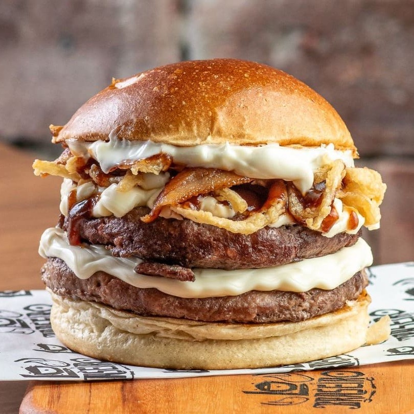 Pão de brioche tostado, 02 burgers de 100g, dupla camada de cheddar cremoso feito na casa, dupla camada de bacon em fatias defumado e dupla camada da nossa deliciosa baconese.