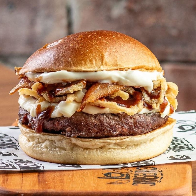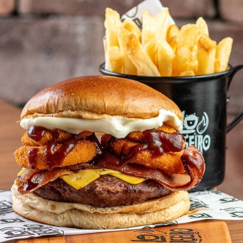 Pão de brioche selado, 02 blends de 160 gramas grelhado no fogo, dobro de Catupiry cremoso, fatias de bacon, crispy onion, Bbq e nossa deliciosa maionese defumada.