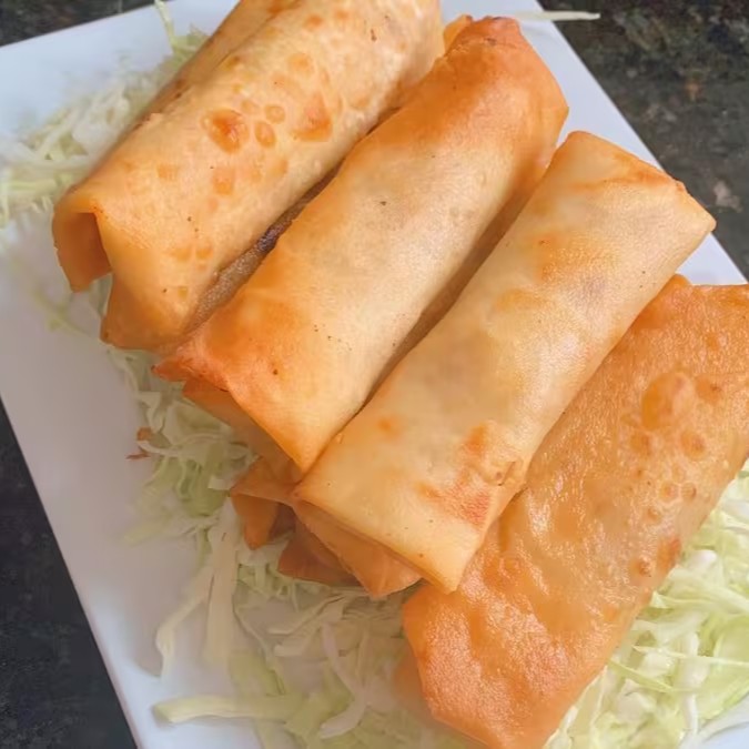 Apresentamos o nosso Rolinho Vegetariano, uma deliciosa entrada que agrada a todos os paladares. É habilmente preparado com uma massa delicadamente fina e crocante, que envolve um recheio leve e saboroso de repolho fresco e cenoura ralada, ambos cuidadosamente selecionados.