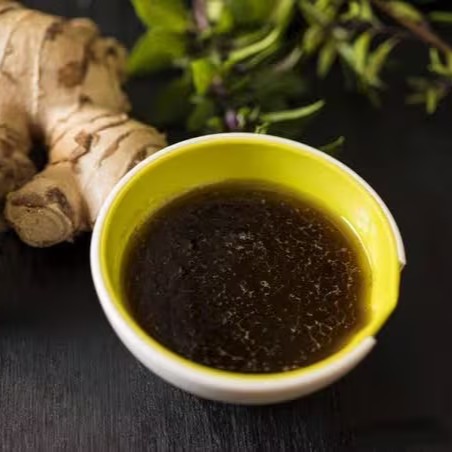 Tiras de frango, alho e cebolinha. Acompanha molho de gengibre