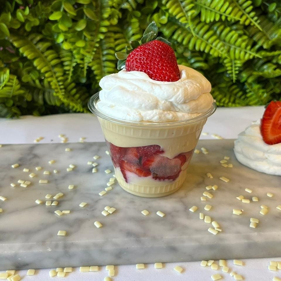 Creme de leite Ninho , morango ,chocolate e chantinho .