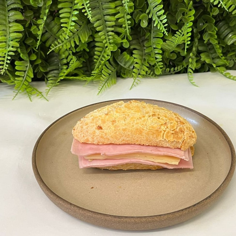 Delicioso biscoito de queijo recheado de Presunto, mussarela e Creme Chesse