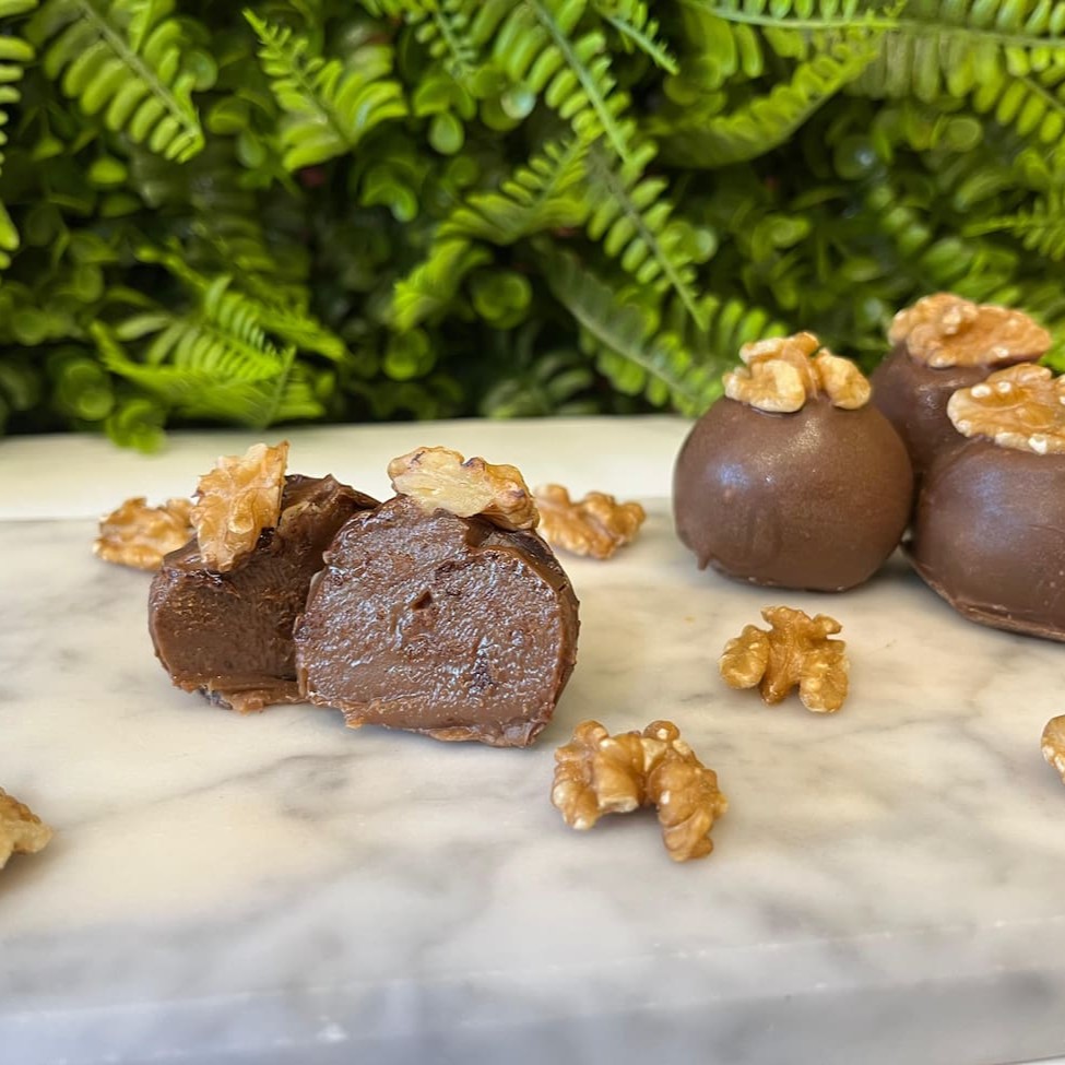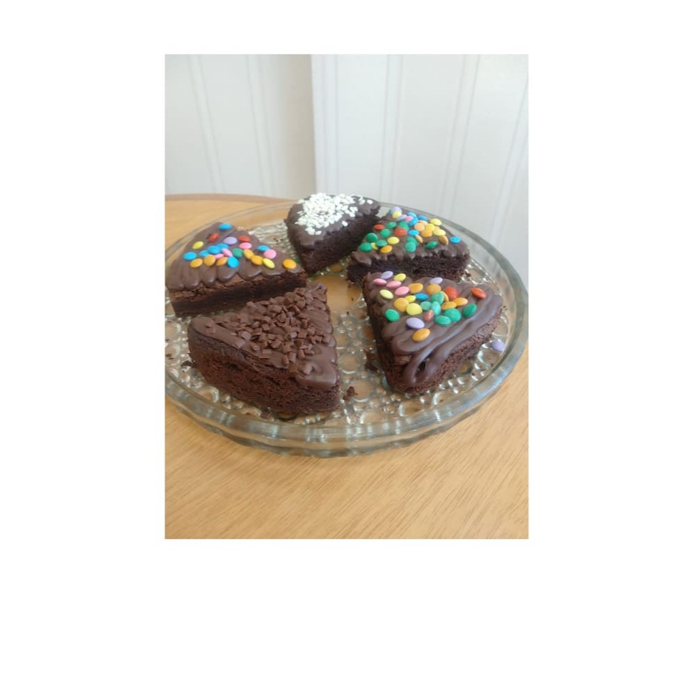 Pedaços de brownie com chocolate trufado 50% cacau.