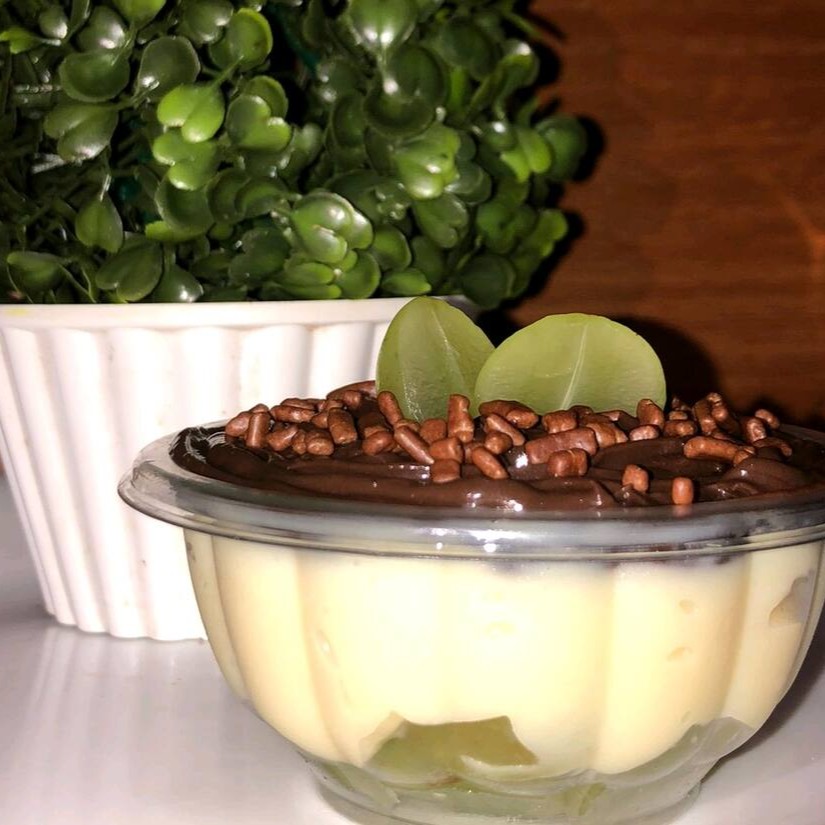 Creme de Ninho super cremoso, brigadeiro de cacau 100% e uvas frescas que dão um toque especial e levemente azedinho, deixando a sobremesa equilibrada e deliciosa