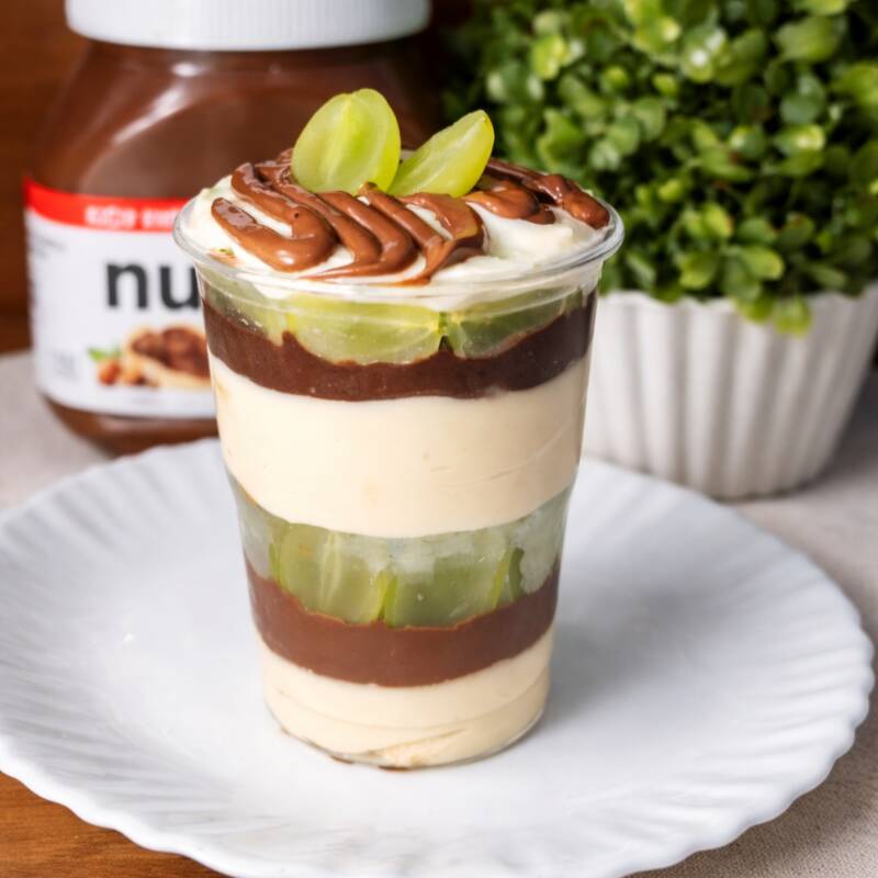 Delicioso creme de Ninho, camada generosa de Nutella e uvas frescas, criando a combinação perfeita entre o doce do chocolate e o sabor suave da uva.