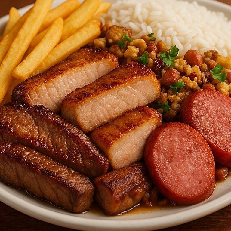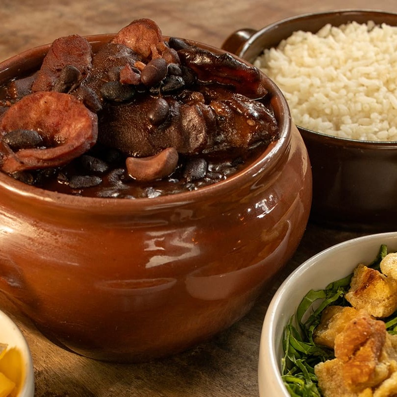 De feijoada a gente entende! Essa é boa demais! Nossa deliciosa feijuca acompanha: * Arroz branco * Farofinha da casa * Couve * Vinagrete. A feijoada magra acompanha linguiça calabresa e carnes.