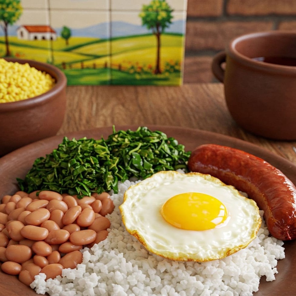 Delicioso mexidão acompanhado de couve, ovo, torresmo e linguiça caseira.