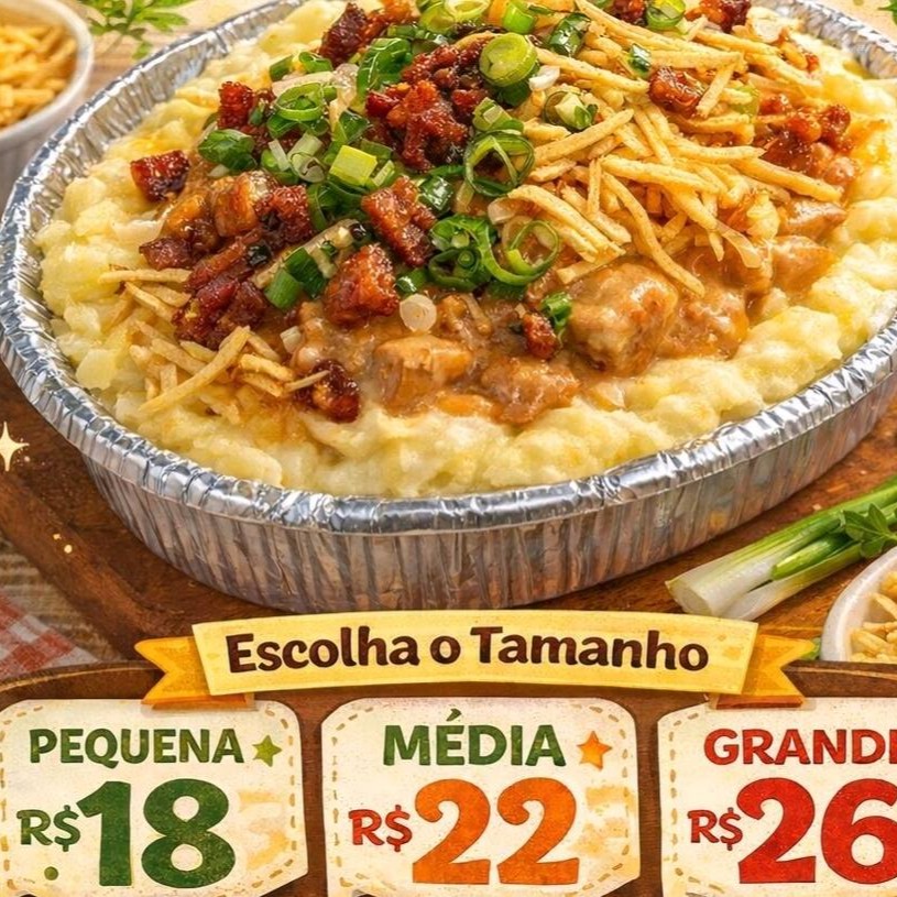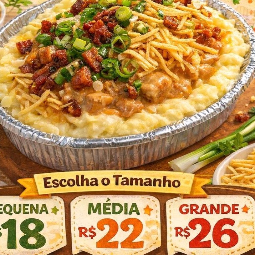 Batata, strogonoff, Bacon, requeijão e cebolinha