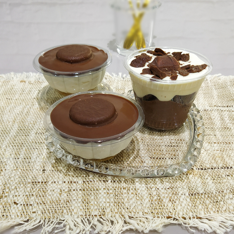 1 Copo Brownie Mousse Doce De Leite + 2 Duas Tortas Holandesas