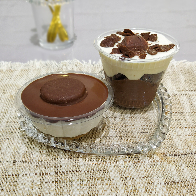 Contém: (01) Copo Brownie Supreme Mousse De Doce De Leite, Pesa Apx 200 Gramas. (01) Mini Torta Holandesa, Pequena, Mini, Pesa Apx 100 Gramas.