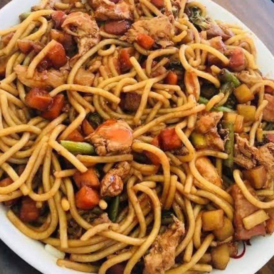 Macarrão na Chapa Sabor Inigualável, Uma combinação perfeita de sabores e texturas que vai te surpreender, uma explosão de sabor feita na hora com ingredientes frescos de alta qualidade, incluindo macarrão espaguete, cebola, calabresa, bacon, frango, milho, molho shoyu e muçarela. O molho shoyu adiciona um toque especial e um sabor irresistível que vai te fazer querer mais. Peça agora e se surpreenda com esse macarrão na chapa.