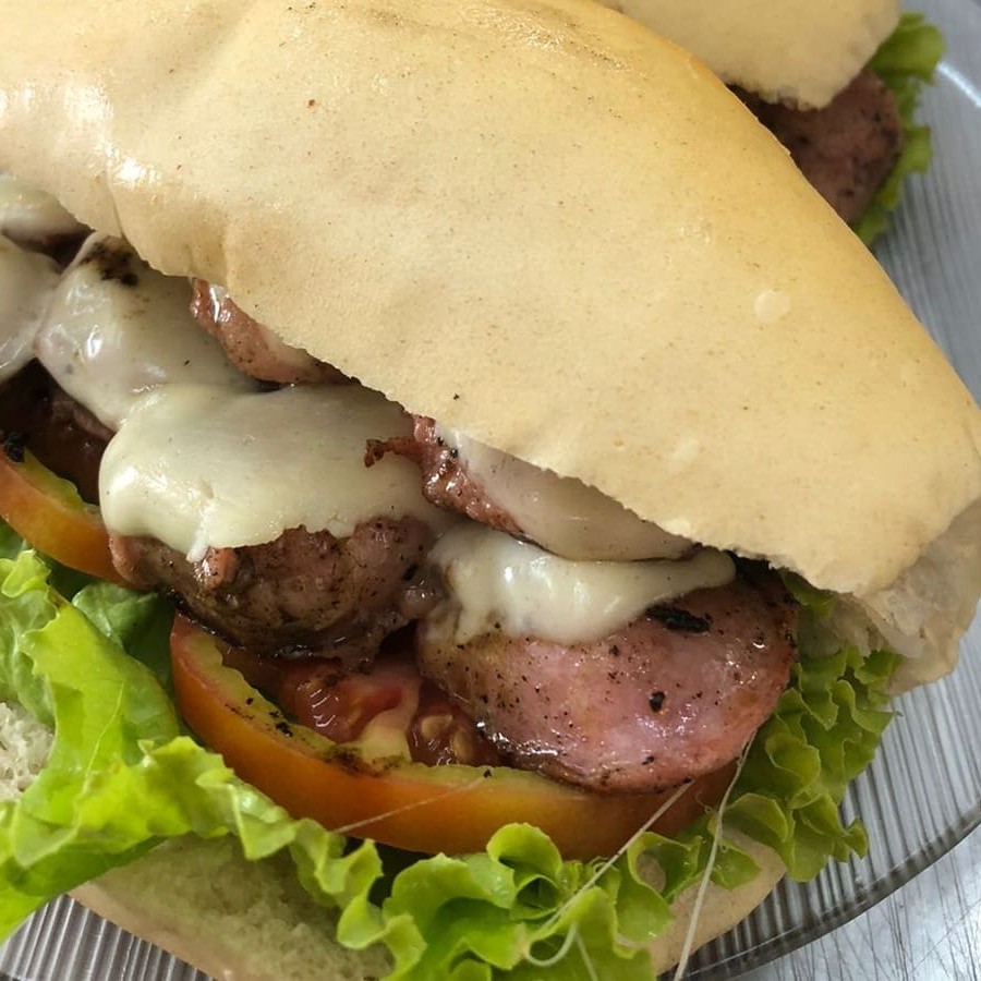 Lanche de Linguiça Toscana! Pão Frances com Linguiça Toscana, uma maravilhosa Mussarela derretida sobre rodelas Frescas de Tomate, Alface. Tudo isso acompanhado com delicioso Molho de Alho Especial