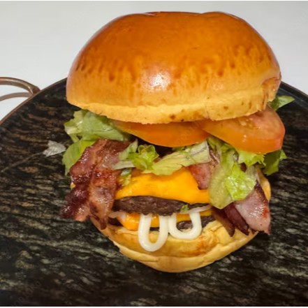 Pão de Brioche, Hambúrguer de Costela de 130g, Queijo Cheddar,cebola caramelizada, Bacon em tiras, Alface Americana, Tomates e Molho Especial.