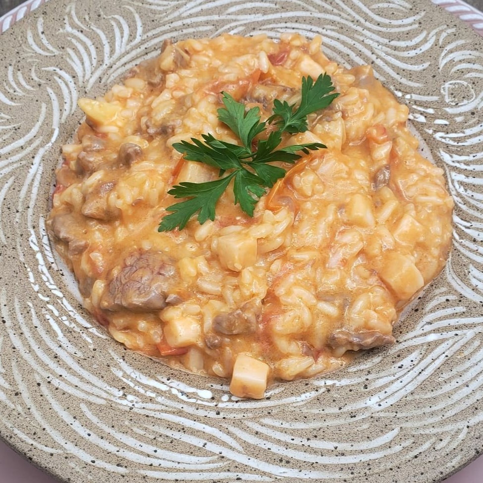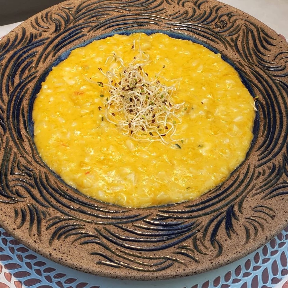 "Nosso risoto de abóbora é cremoso e levemente adocicado, harmonizado com o sabor marcante e a textura aveludada do queijo brie. Uma refeição irresistível para momentos especiais."""