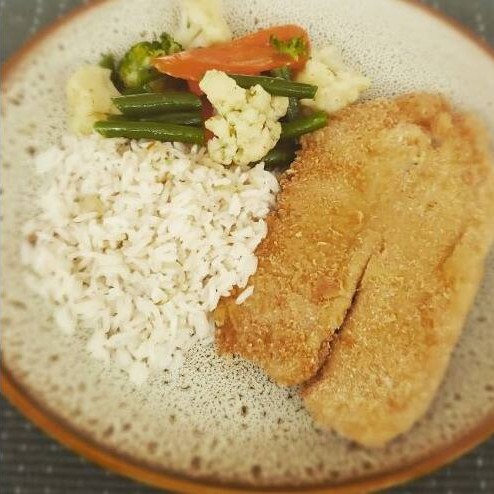 Sabor e textura em perfeita harmonia! Tilápia empanada e crocante, servida com arroz aromático de alho e legumes na manteiga, salteados até o ponto ideal. Uma marmita que é pura satisfação em cada garfada.