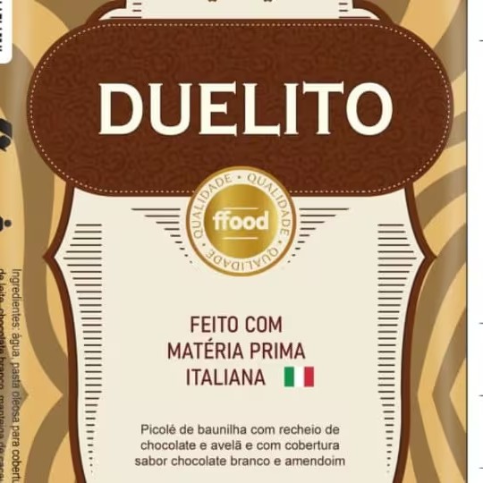 Picolé sabor baunilha com recheio de chocolate e avelã com casquinha sabor chocolate branco e amendoim
