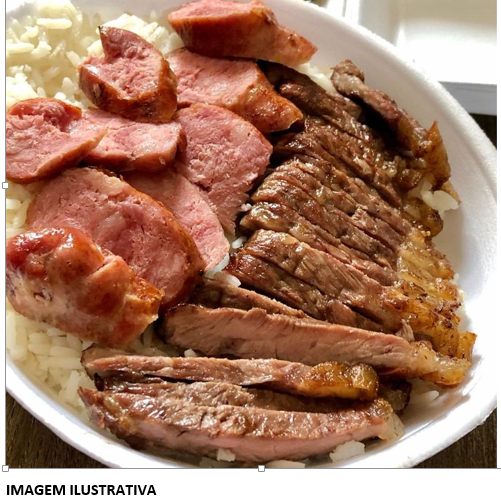 Acompanha sabaroso arroz, feijão , churrasco ,batata frita salada da casa