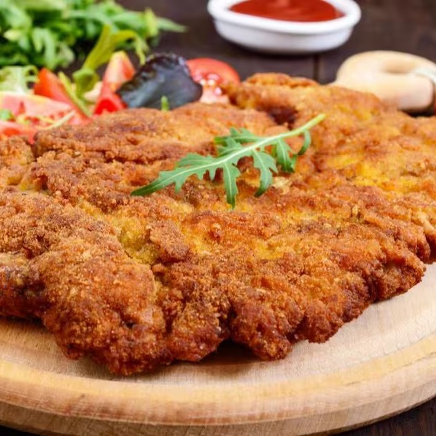 Filé de Boi Selecionado à Milanesa (acompanhada arroz, feijão do Dia, purê).