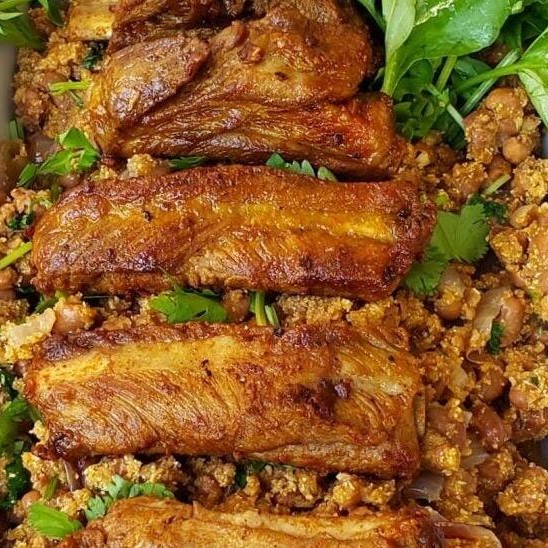 Costelinha de porco ao ponto por fora e suculenta por dentro, acompanhada de arroz soltinho, tropeiro saboroso e couve um ponto perfeito. Uma explosão de sabor em cada mordida!