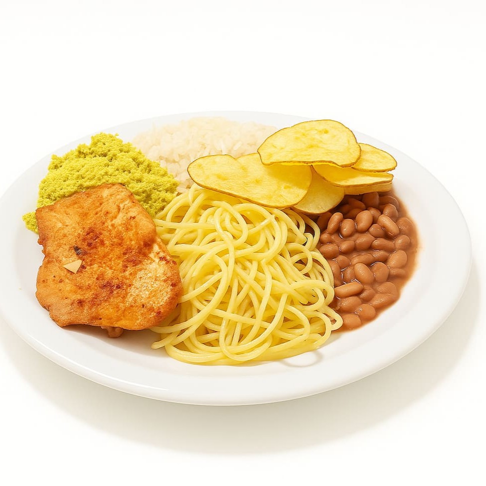 Aquele Pf de respeito! Arroz fresquinho, feijão do Dia, macarrão bem temperado, farofa crocante, batata chips e uma proteína a sua escolha. Uma refeição caseira, saborosa e com aquele gostinho especial que dá vontade de repetir!