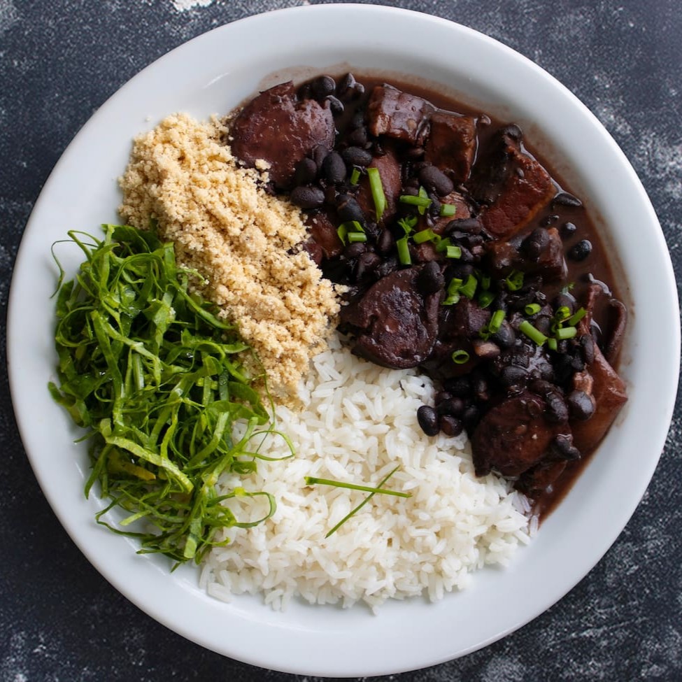 Feijoada! Acompanha arroz branco, couve refogada, farofa na manteiga.