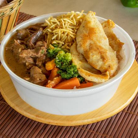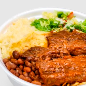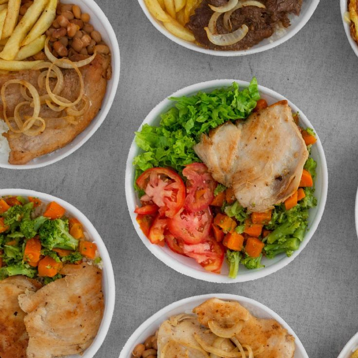 Arroz, feijão ,batata frita,macarrão,legumes, salada, bife de frango, com o sem cebola a gosto.