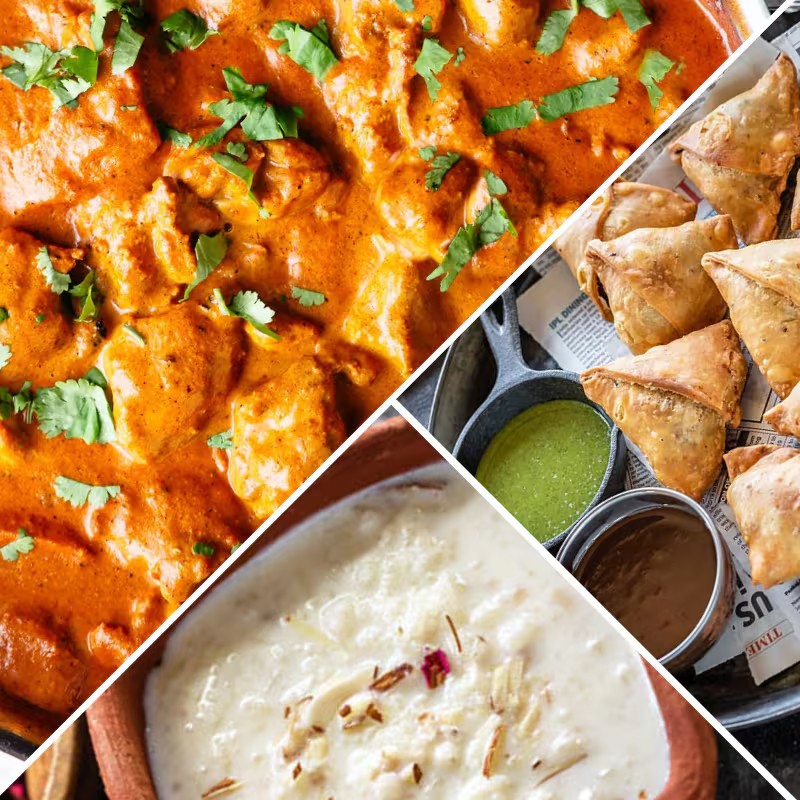 Nosso combo família especial murg acompanha entrada, prato principal e sobremesa. Serve 4 pessoas.