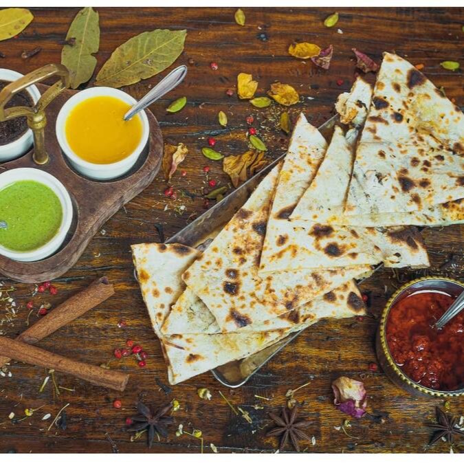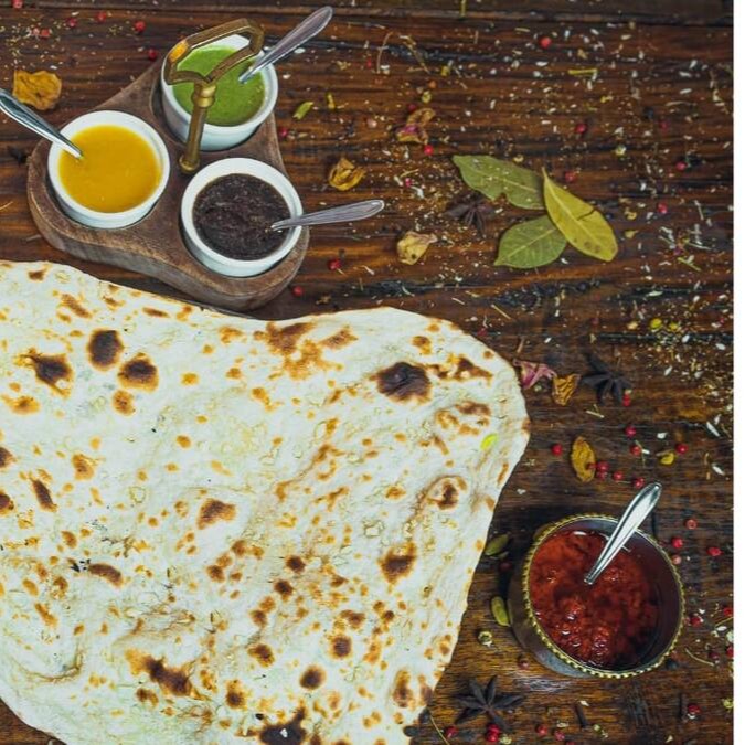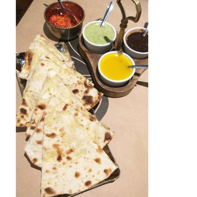 Pão especial feito no forno tandoor. Acompanha chutney.