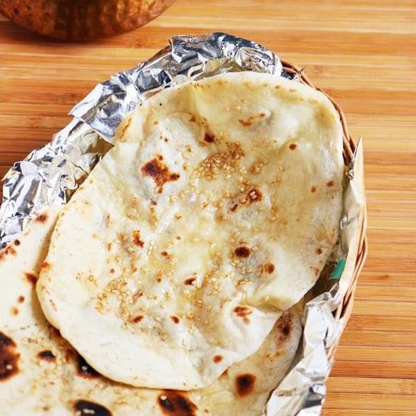 Pão especial feito no forno tandoor , coberto com manteiga.