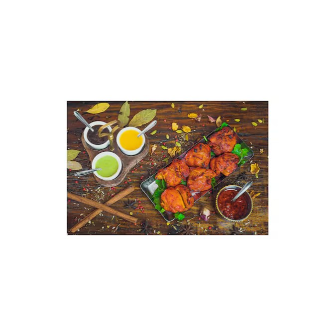 Frango marinado com iogurte caseiro , pasta de alho e gengibre. Assado no forno tandoor. Acompanha chutney.