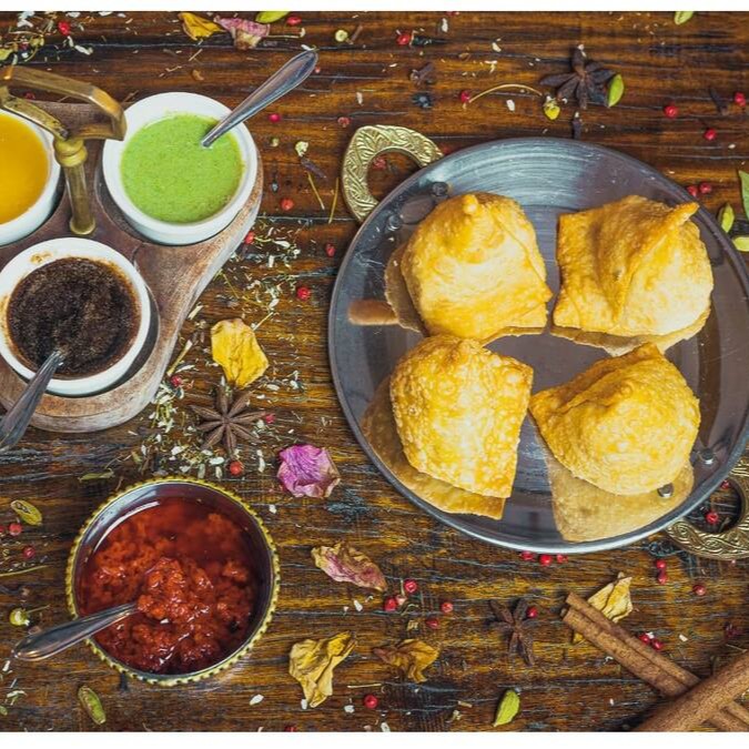 2 unidades de frango e 2 unidades de sabzi samosa.