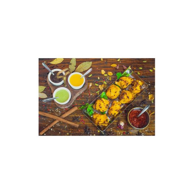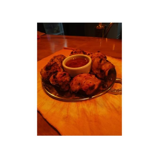 Cubos de peixe assados no tandoor, marinados com iogurte caseiro , pasta de gengibre e alho.