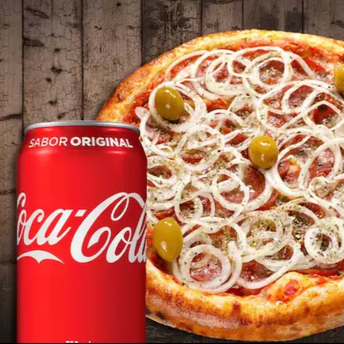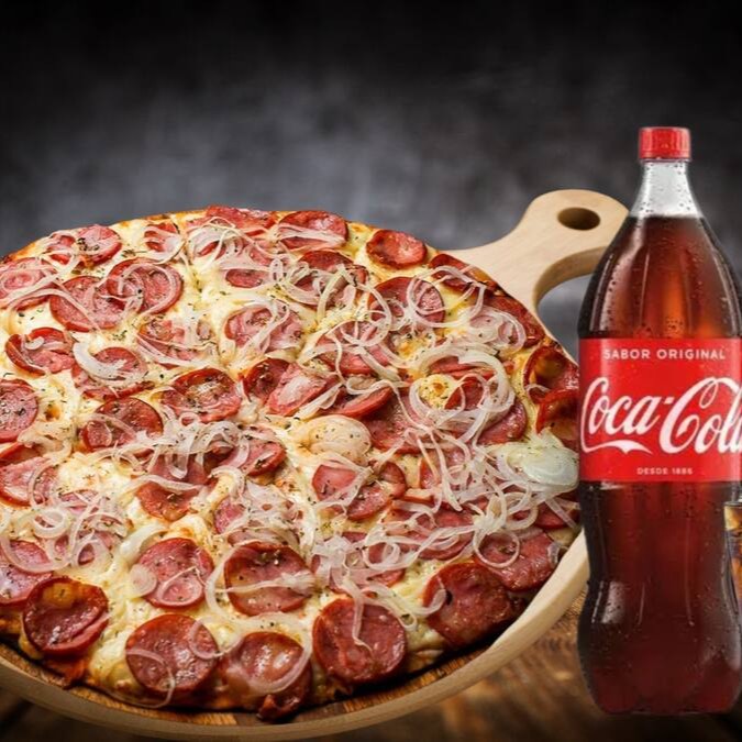 Pizza Grande 6 Fatias + Coca Cola 600ml Grátis.