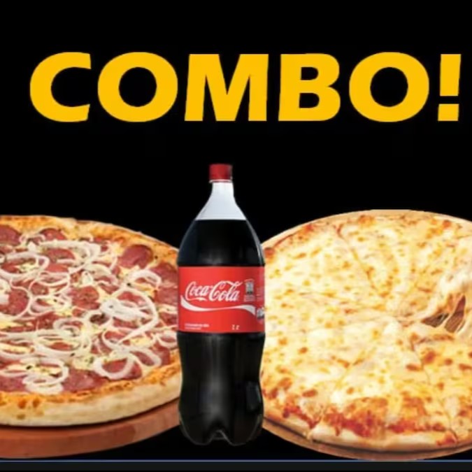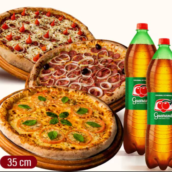 1 pizza gigante 8 fatias. Refri 600ml: Coca cola ou Guaraná antártica.